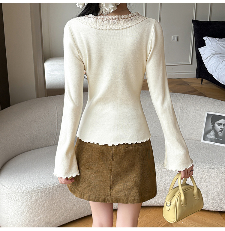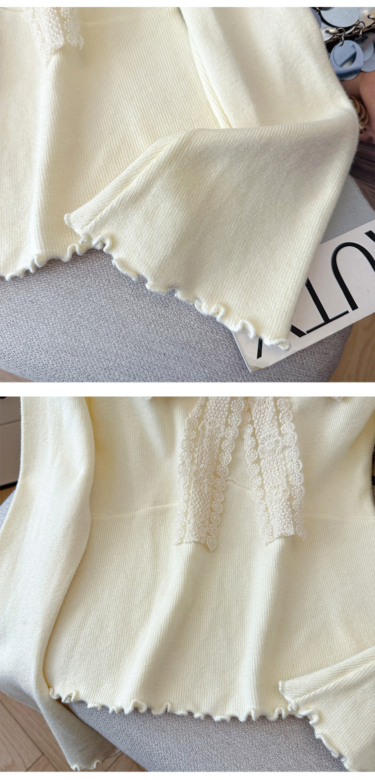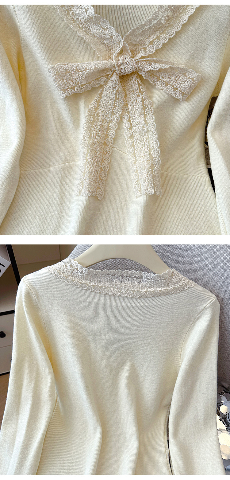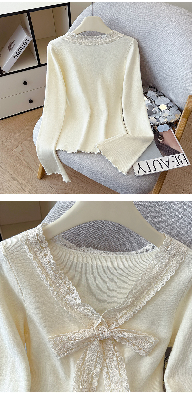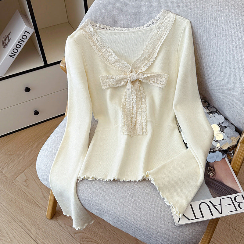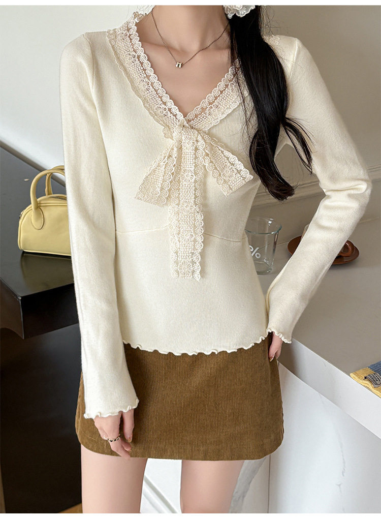 V-Neck Knit Sweater with Bow Detail - Flared Sleeve Pullover