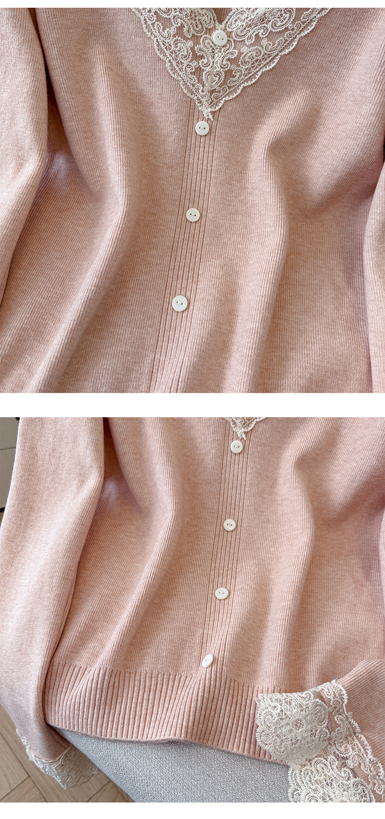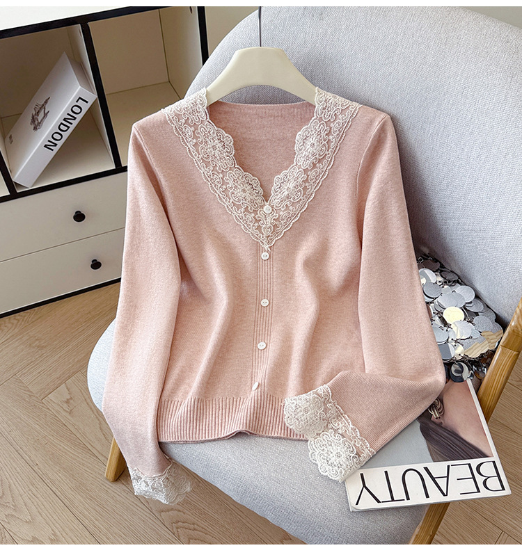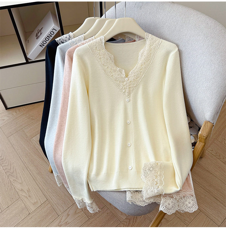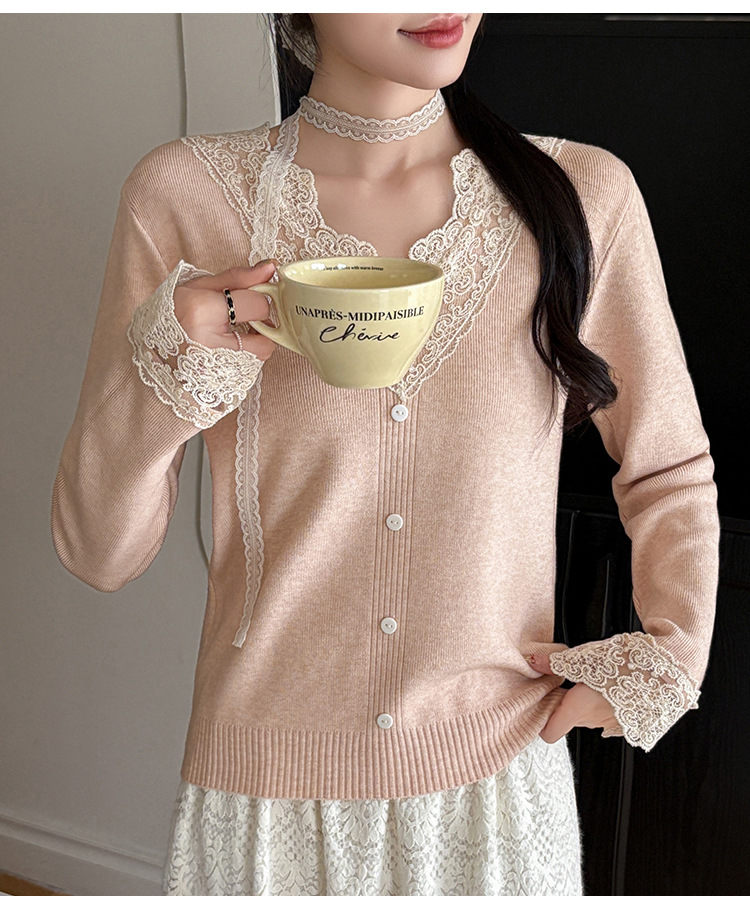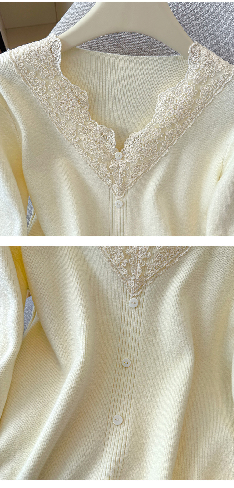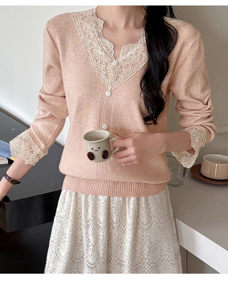 V-Neck Knit Sweater with Button Detail - Long Sleeve Pullover