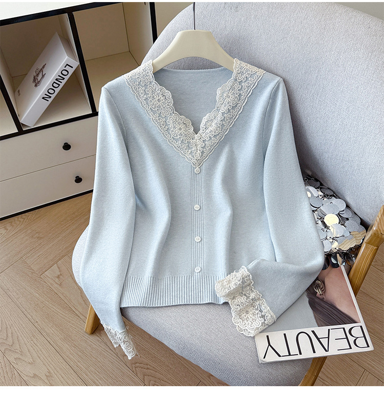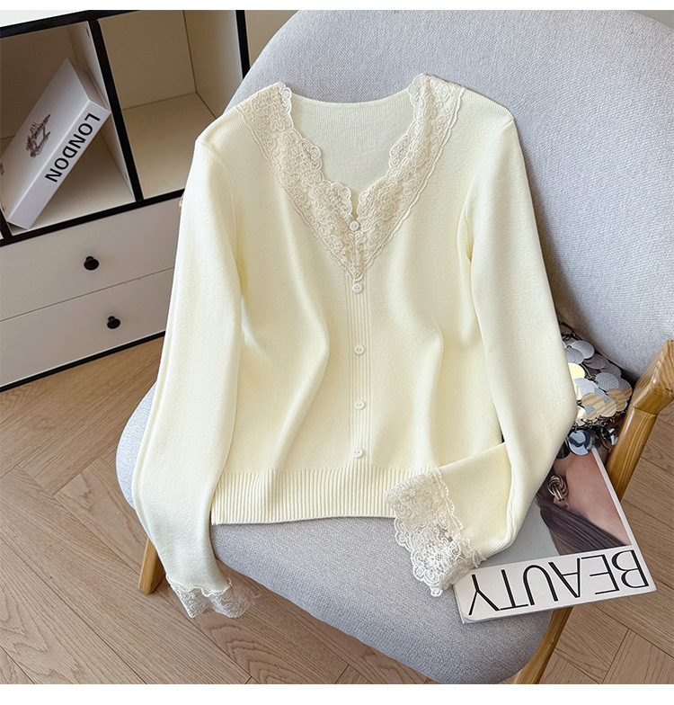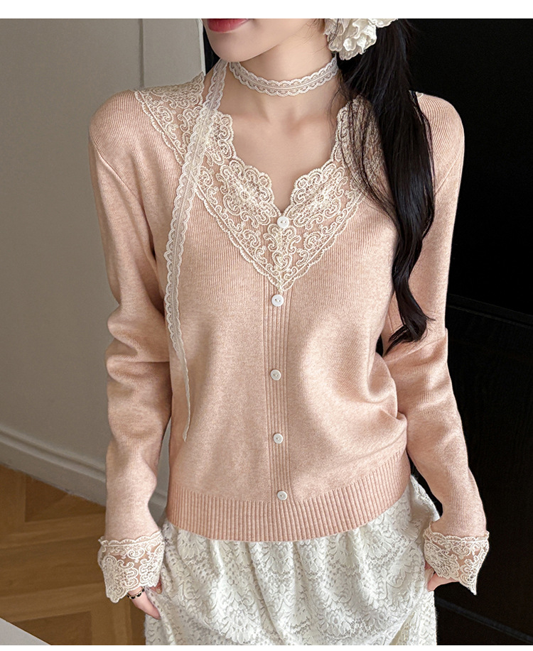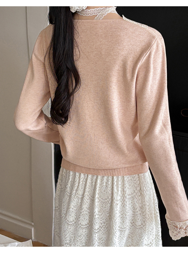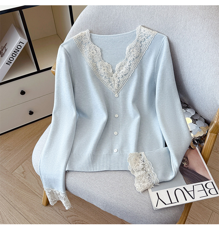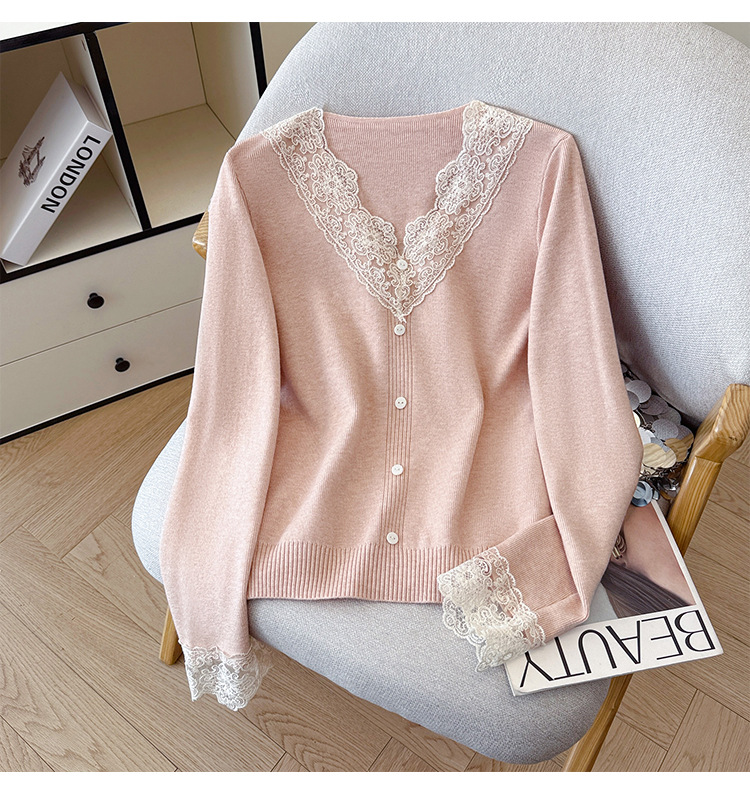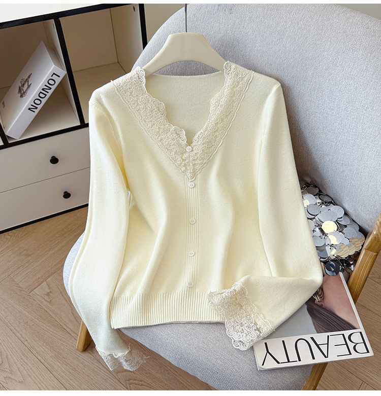 V-Neck Knit Sweater with Button Detail - Long Sleeve Pullover