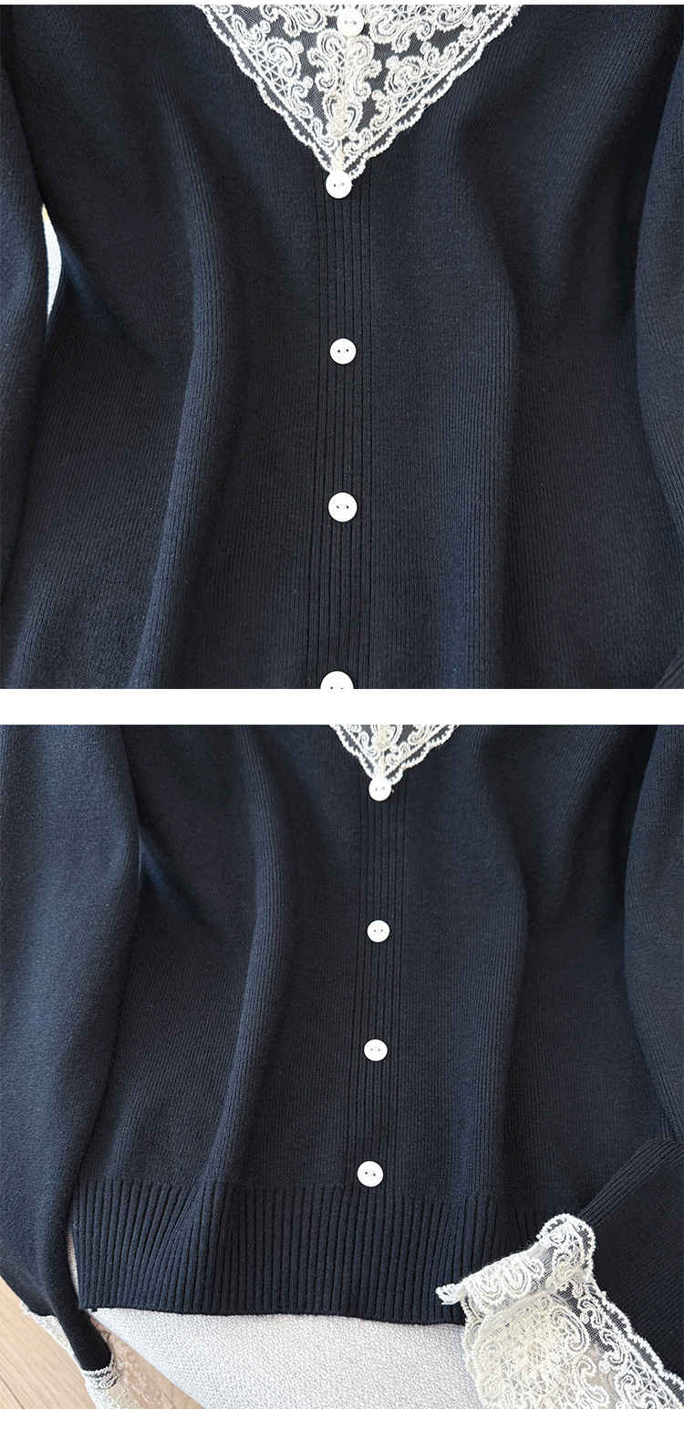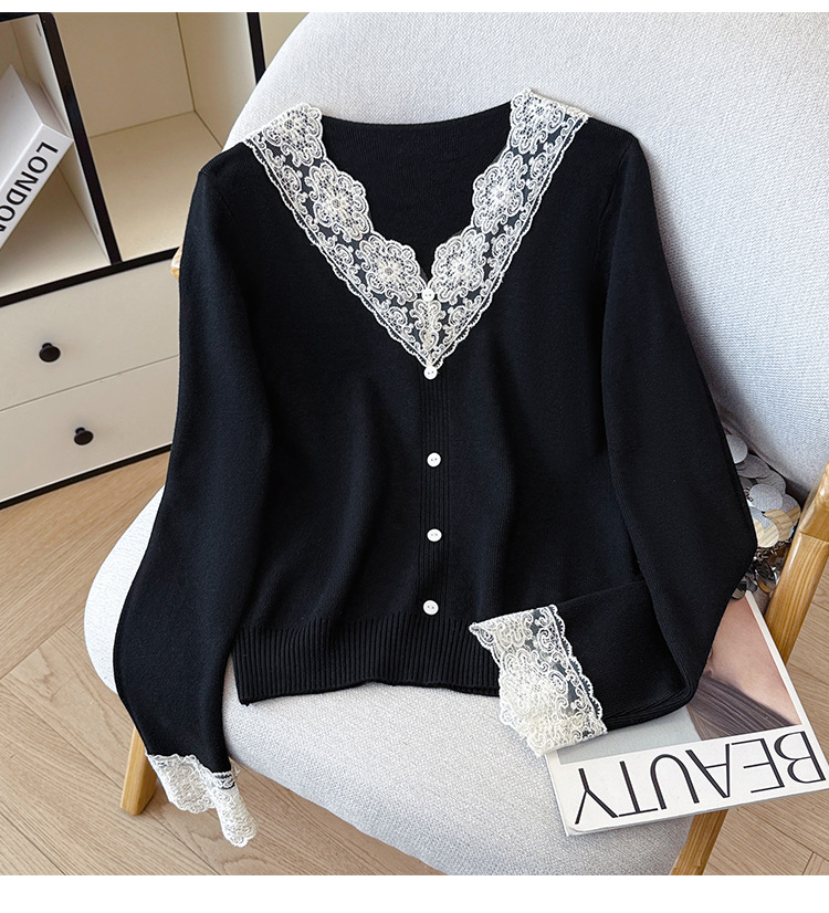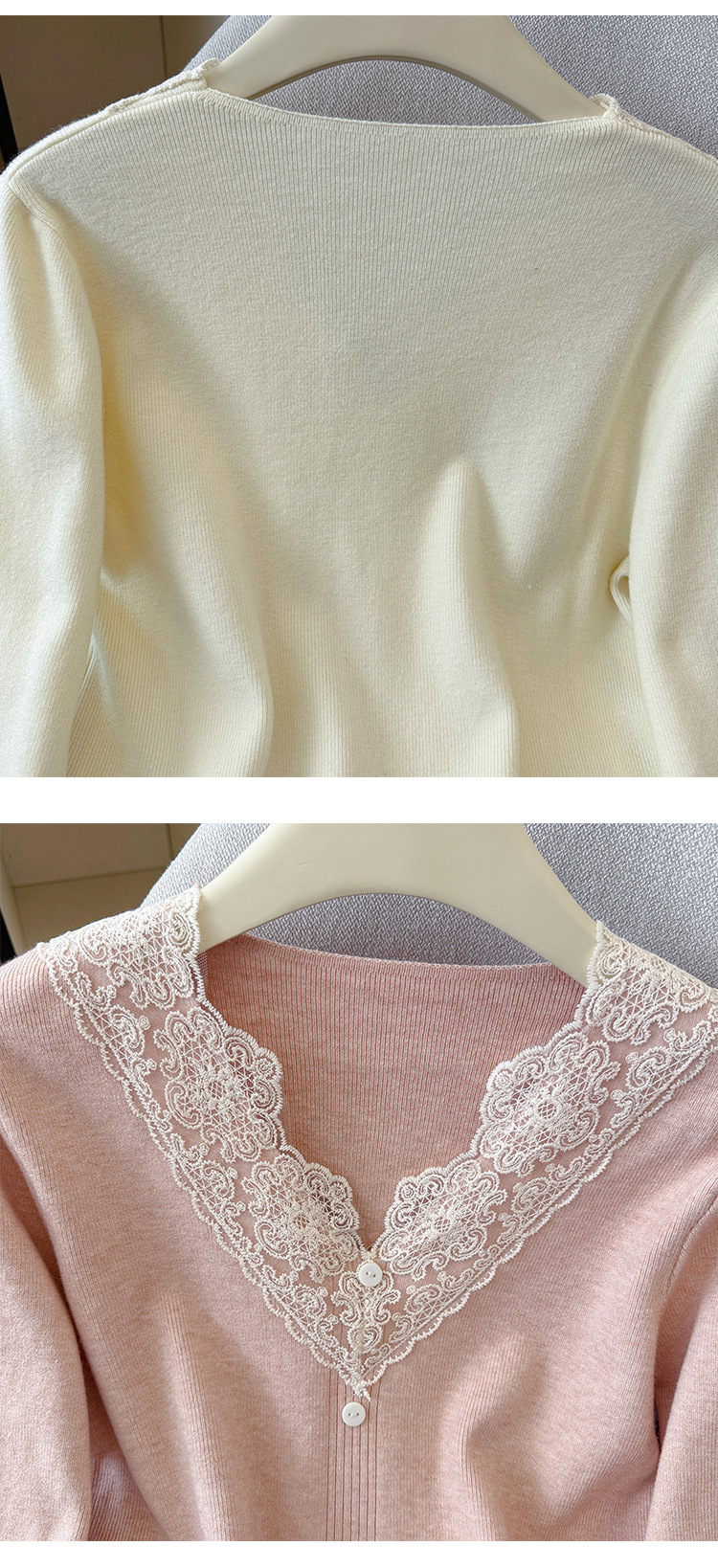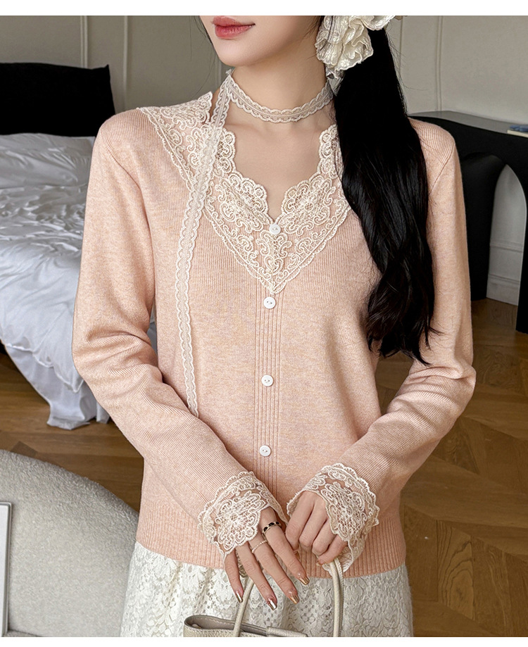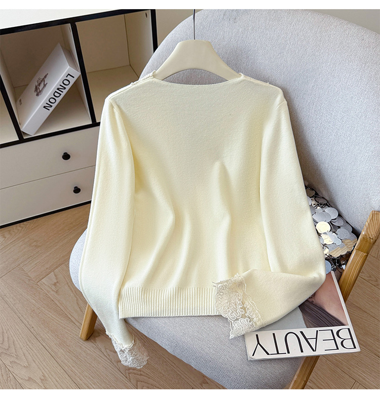 V-Neck Knit Sweater with Button Detail - Long Sleeve Pullover