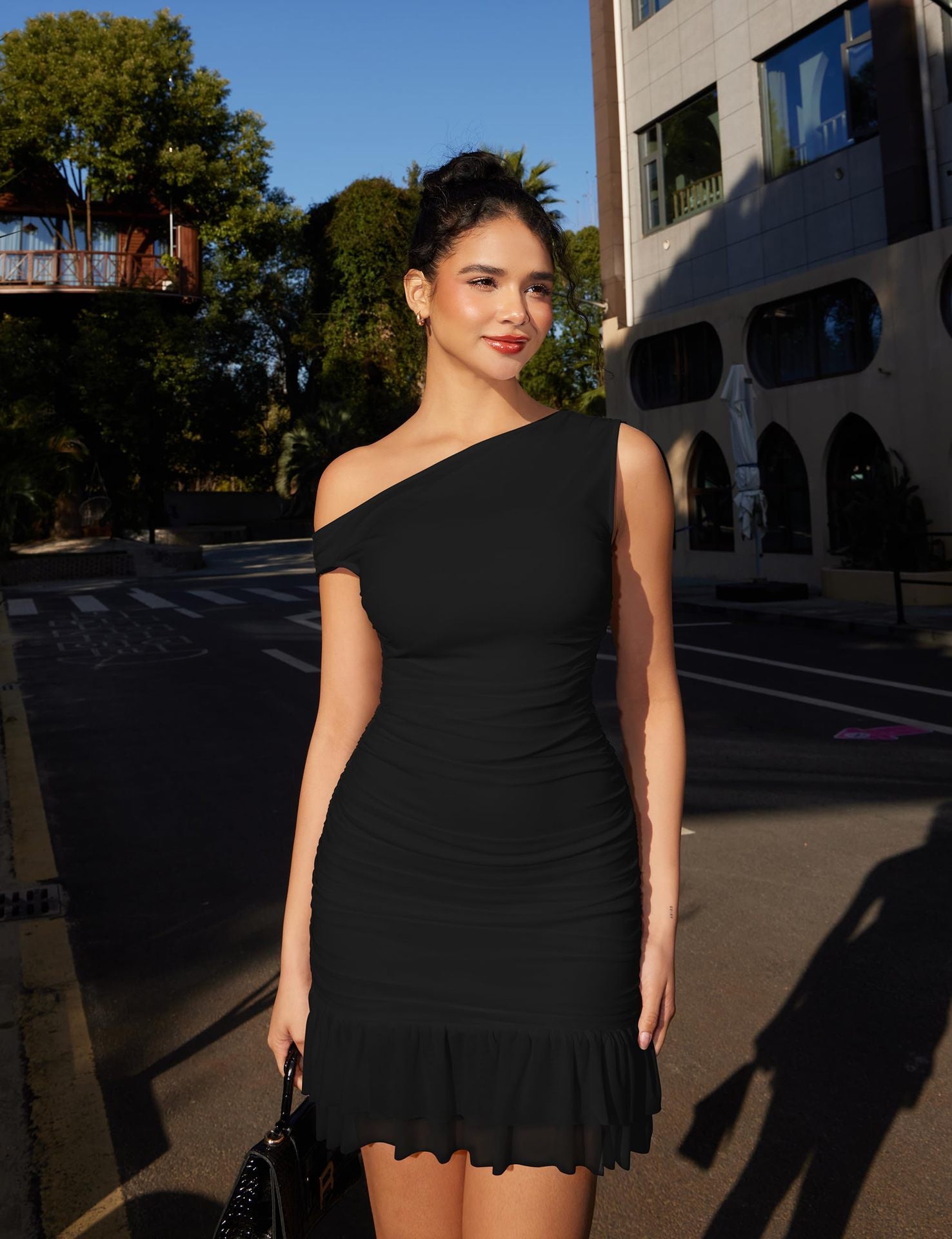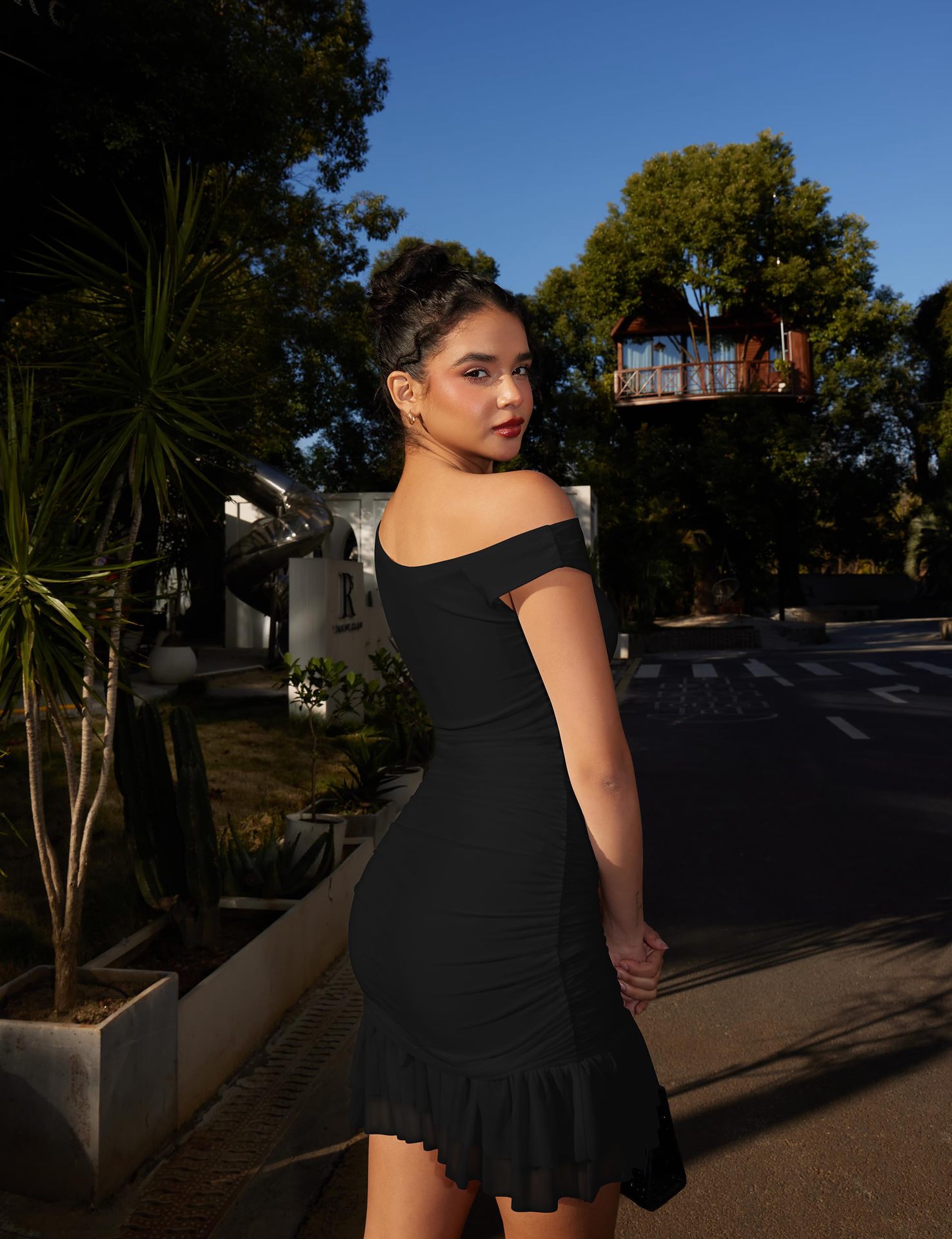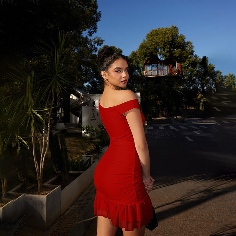 Off-Shoulder Lace Trim Bodycon Dress - Sleeveless Mini Dress