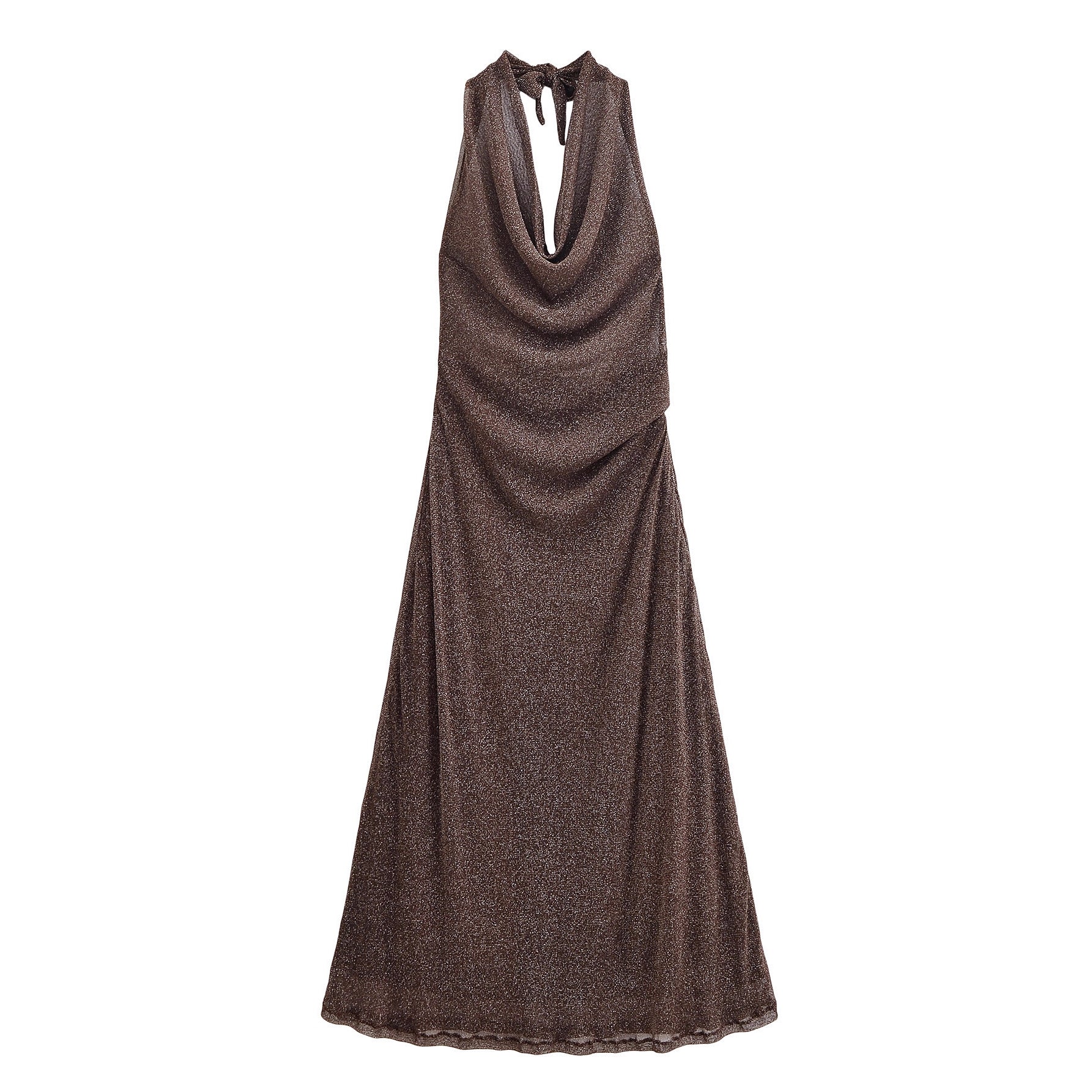 French Backless Metallic Dress - Brown Sleeveless A-Line Long Dress