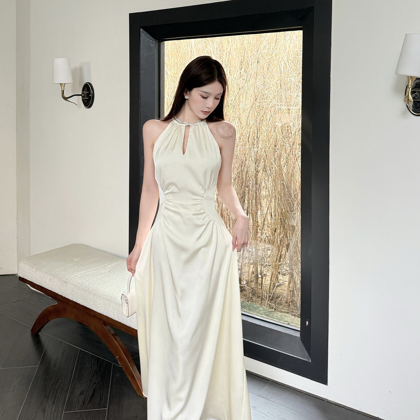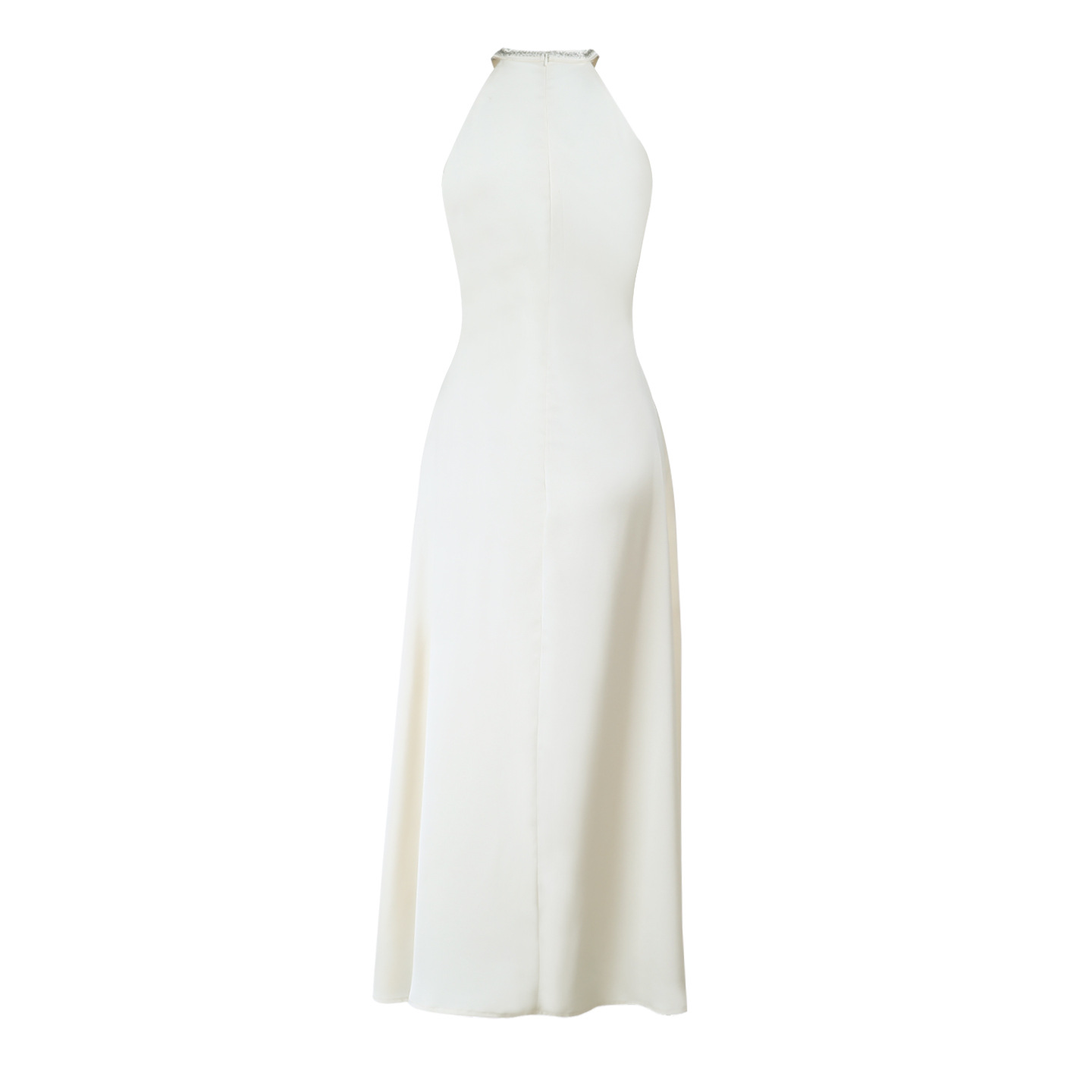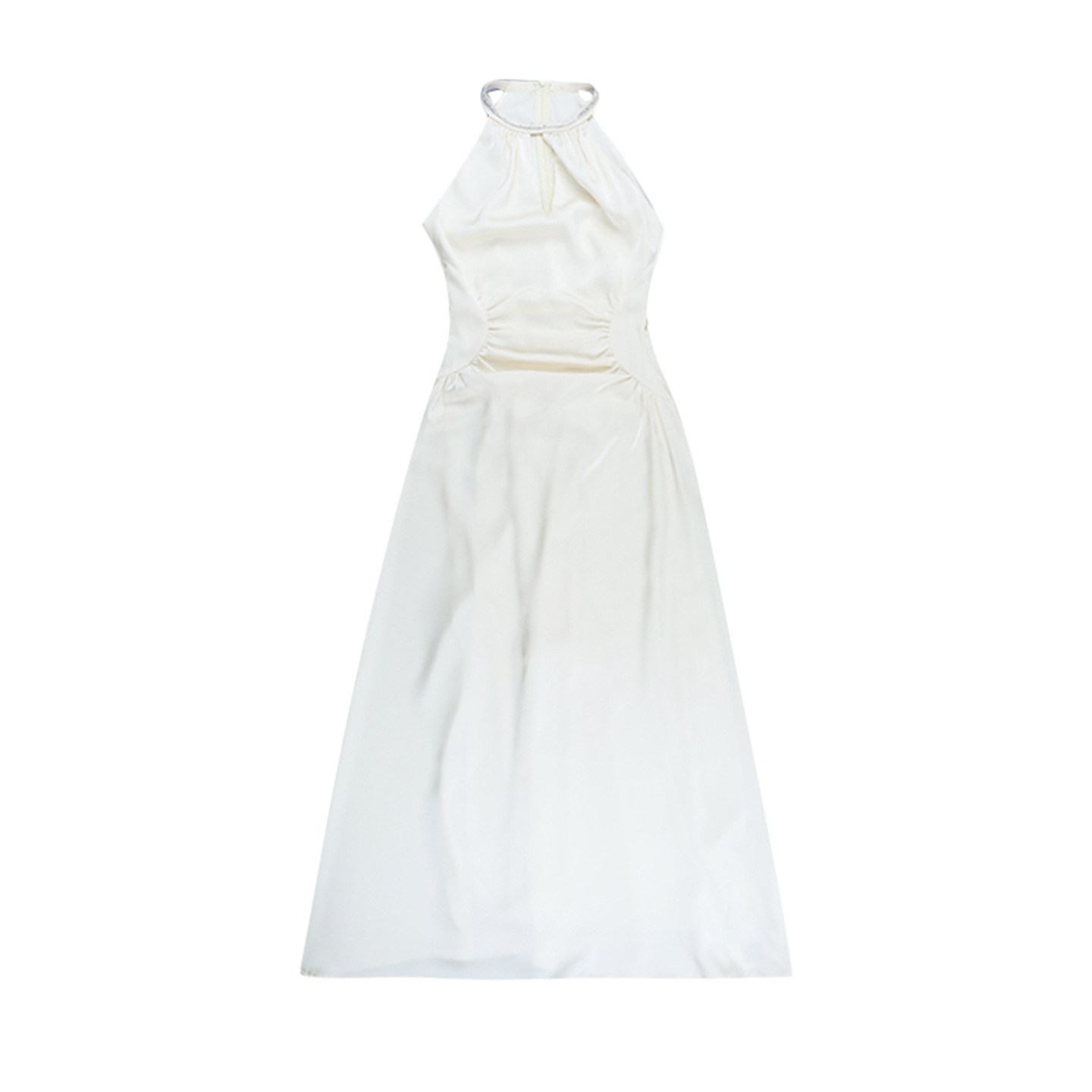 Hanging Neck Satin French Minimalist Elegant Long Skirt - Apricot Midi Dress