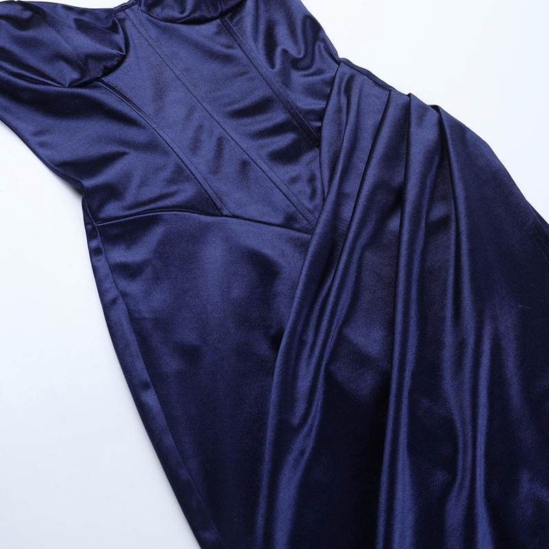 Hanging Neck Slit Satin Sexy Slim Fit Long Skirt - Dark Blue Maxi Dress