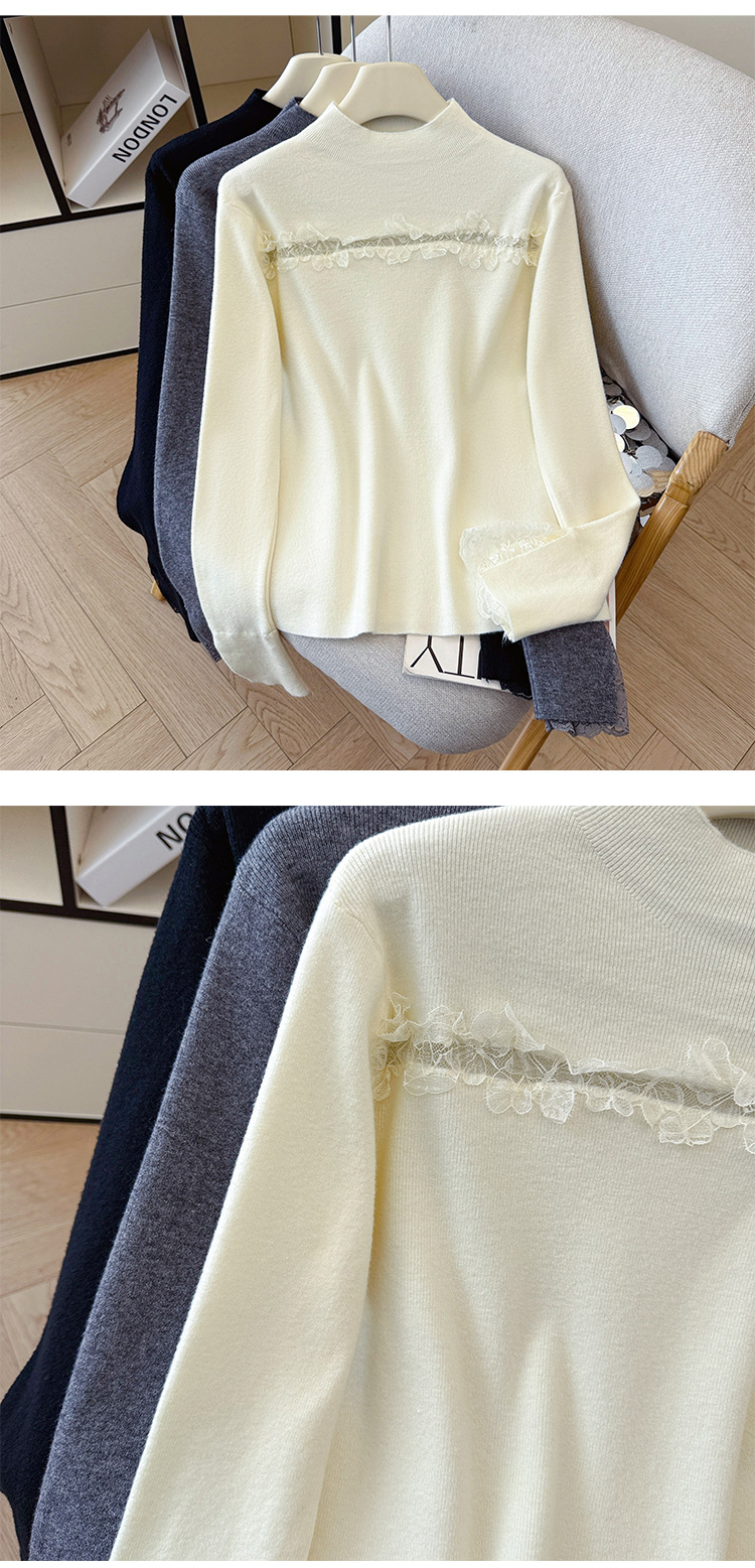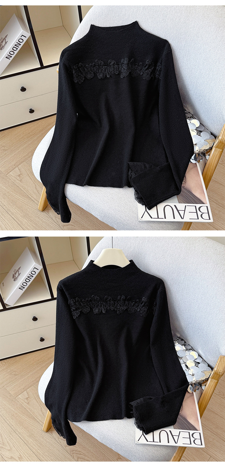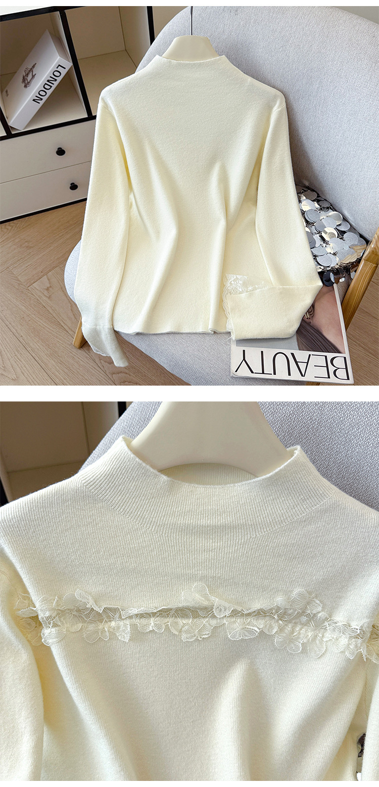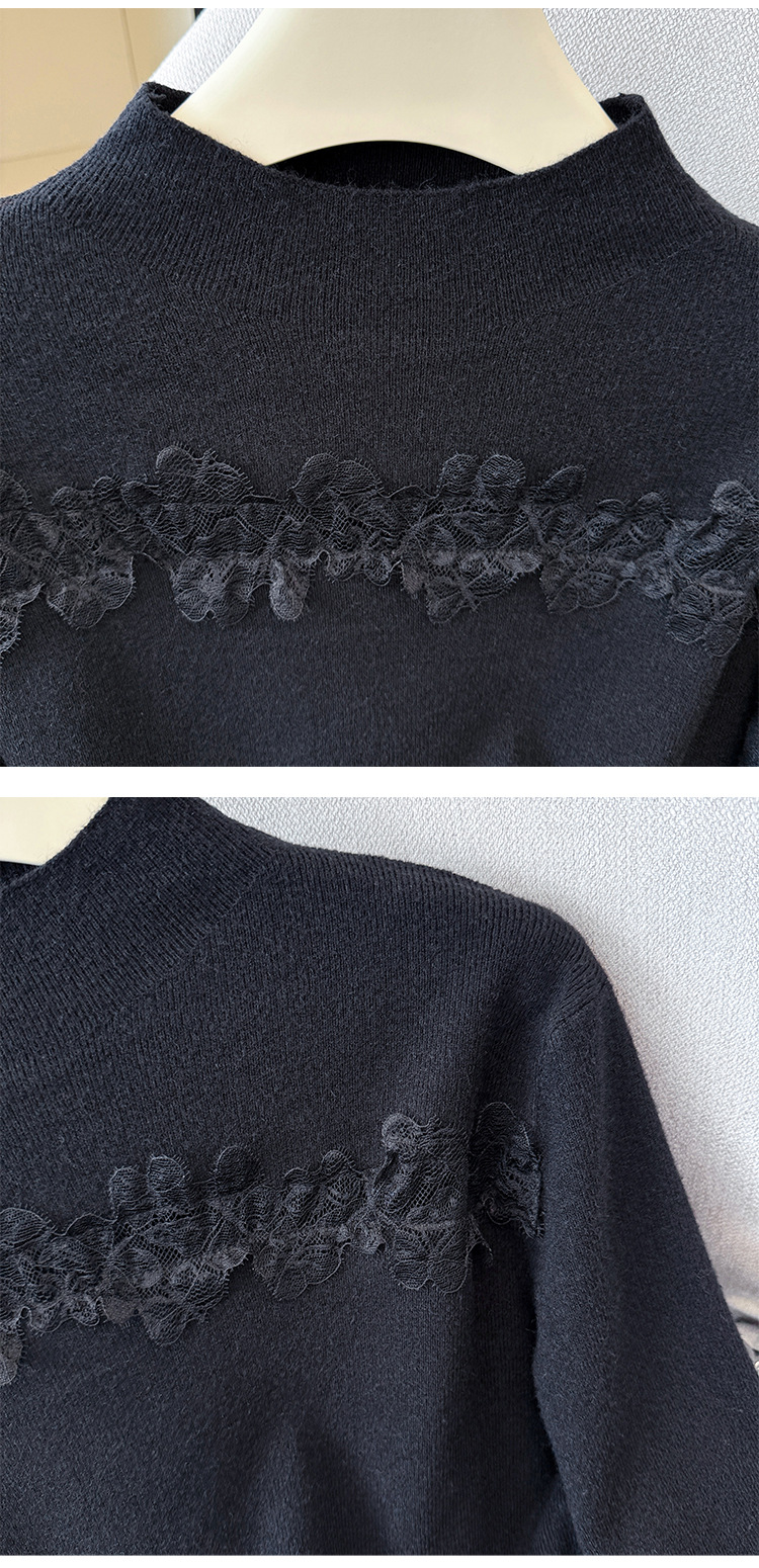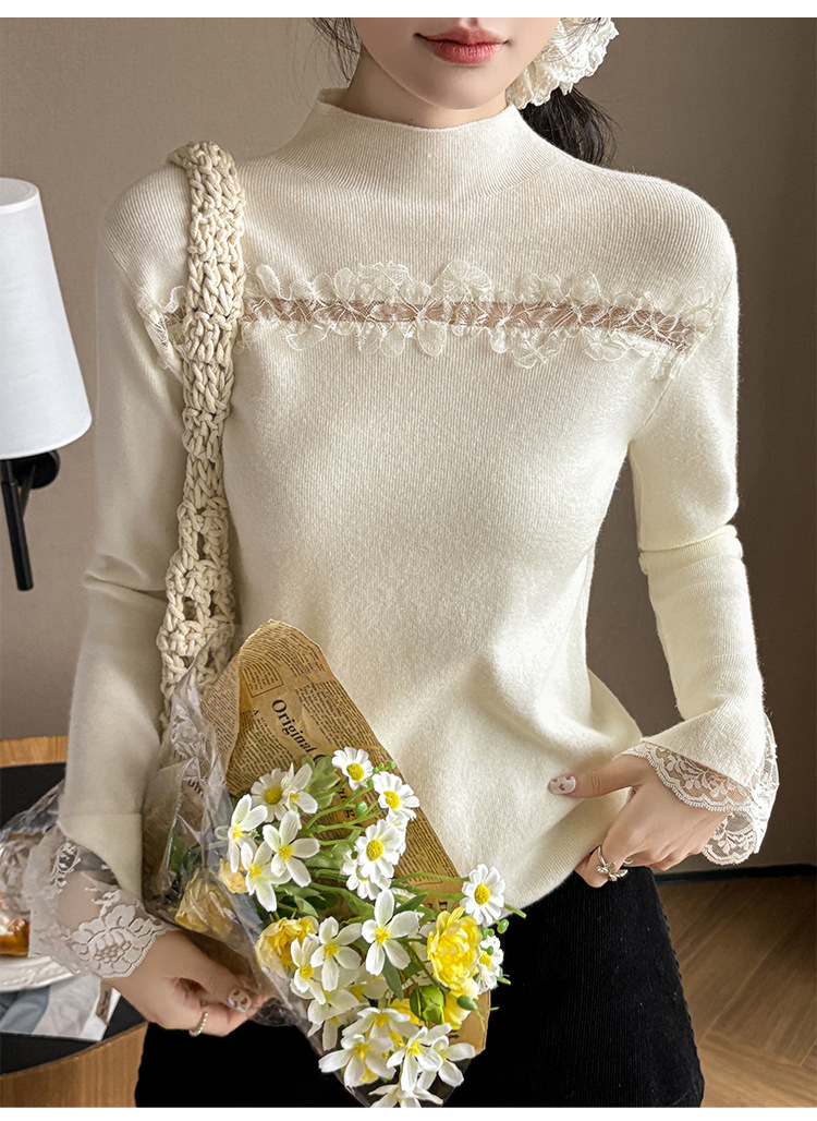 Lace Trim Halter Neck Knit Top - Hollow Out Long Sleeve