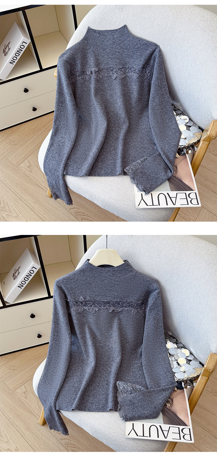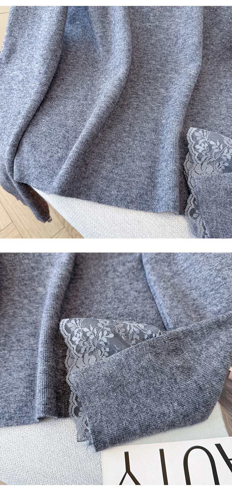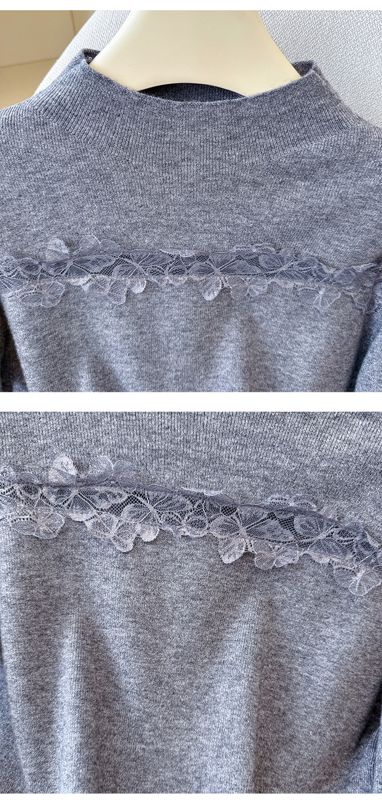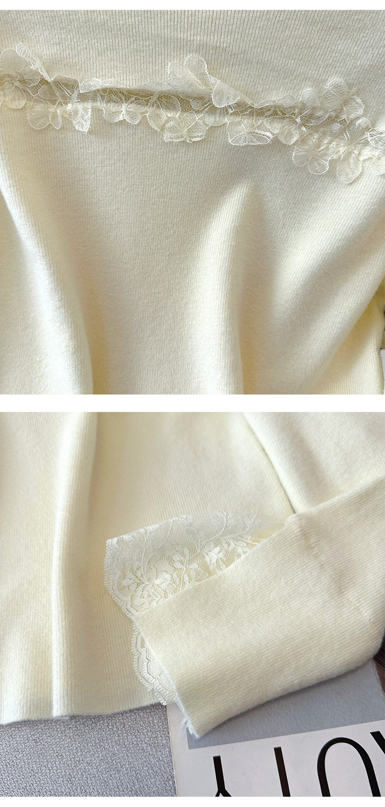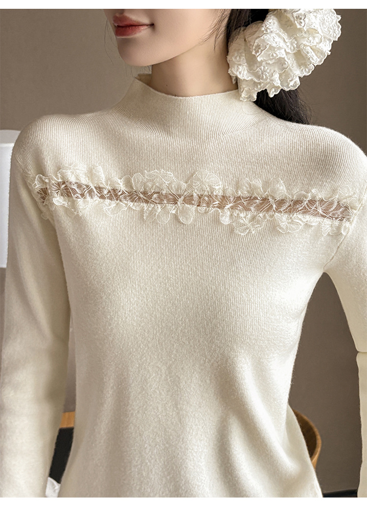 Lace Trim Halter Neck Knit Top - Hollow Out Long Sleeve