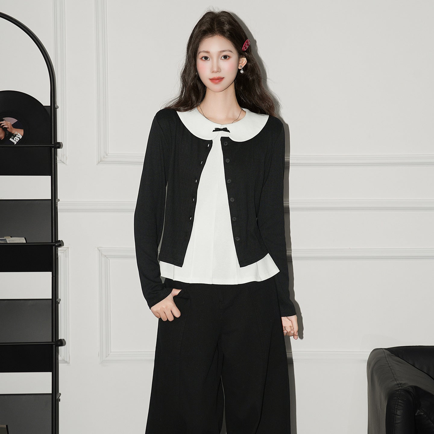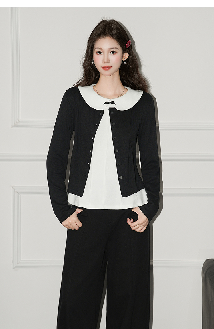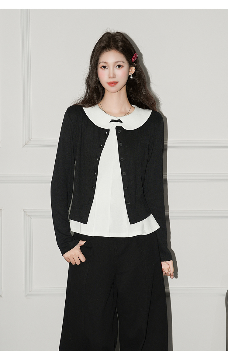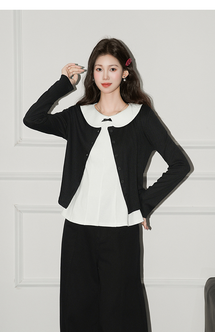 Knit Cardigan & Bow Collar Vest Set - Slim Fit Two-Piece Top