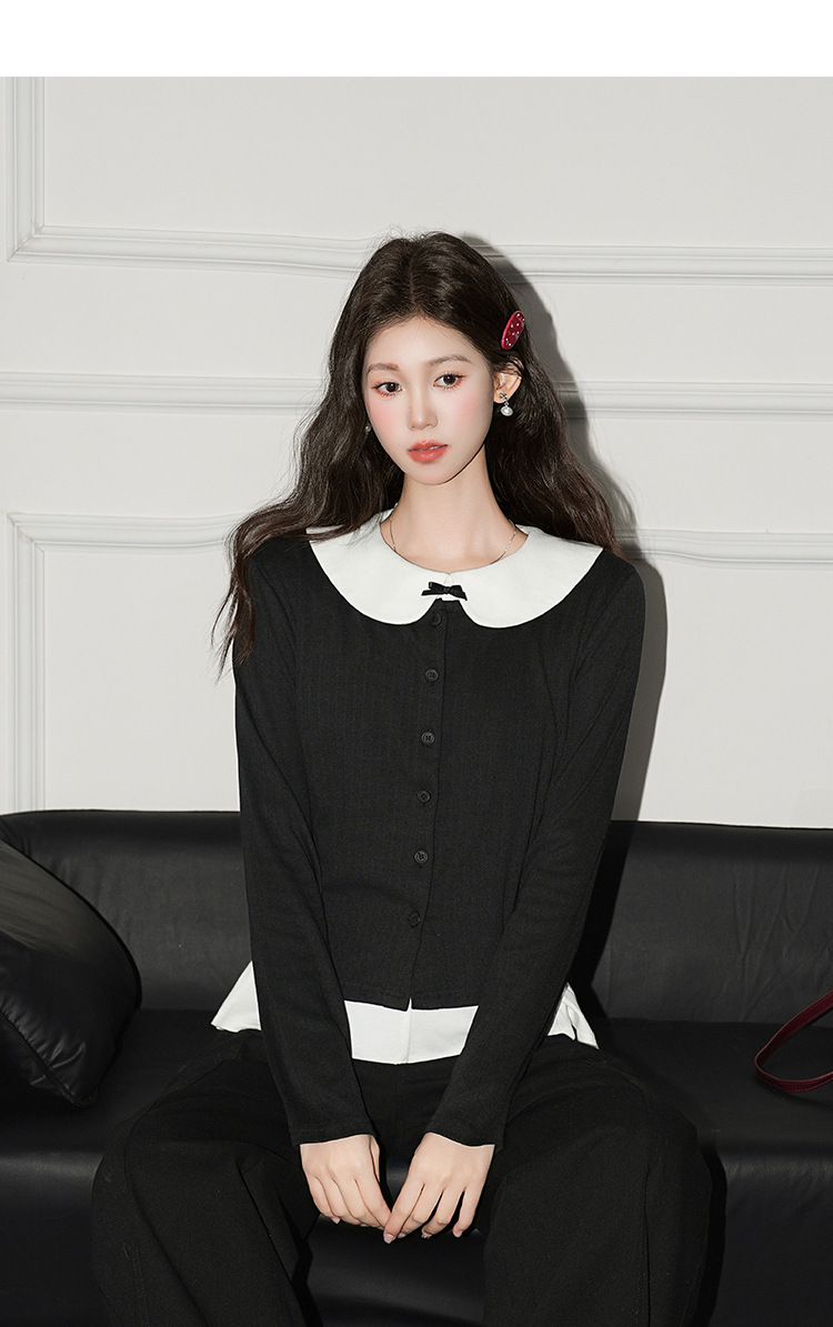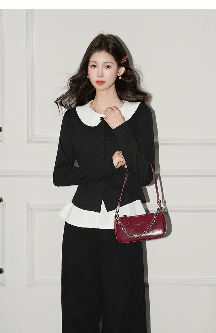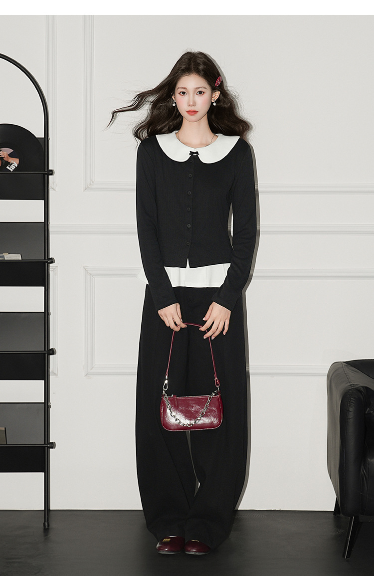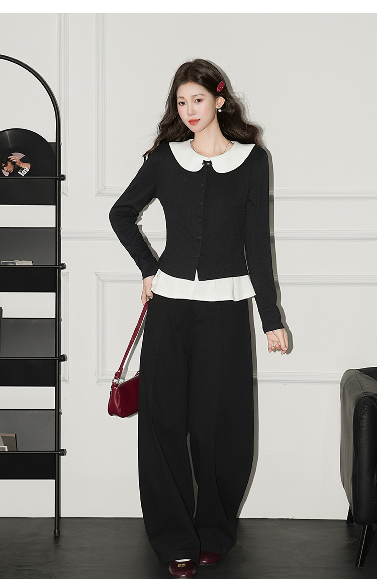 Knit Cardigan & Bow Collar Vest Set - Slim Fit Two-Piece Top