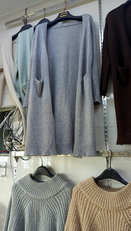 Oversized Knit Cardigan with Pockets - Long Sleeve V-Neck Sweater Coat