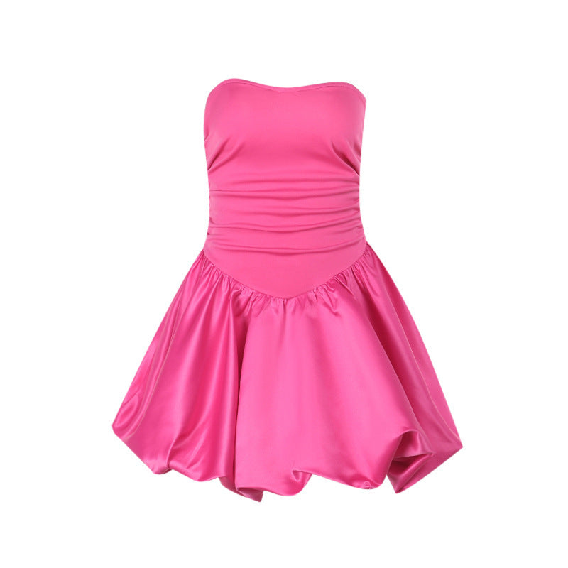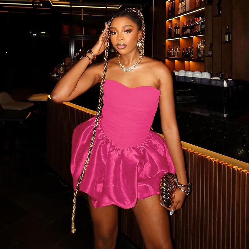 Sexy Slim Fit Patchwork Satin Strapless Skirt - Crimson Red Bodycon Mini Dress