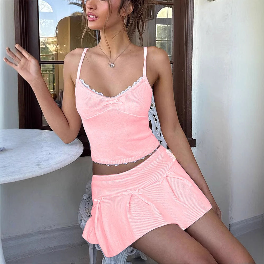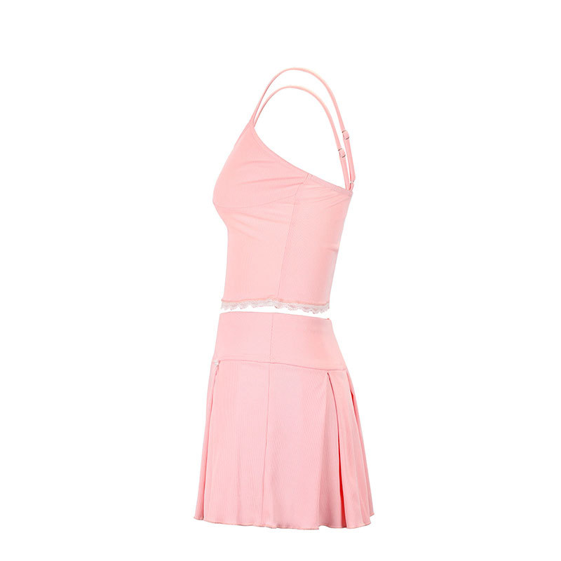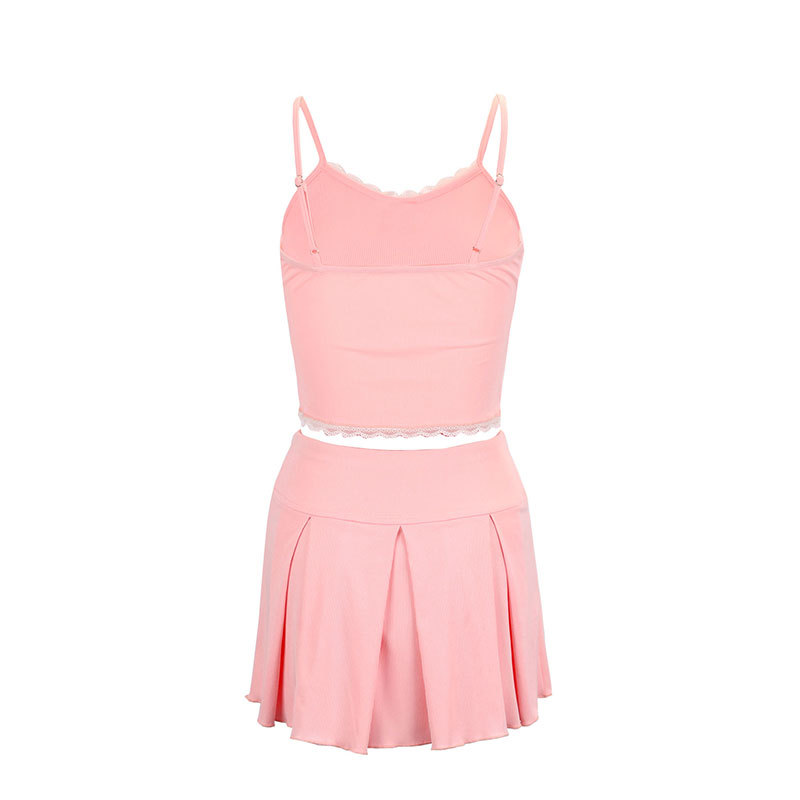 Pink Lace Trim Cami Top & Mini Skirt Set - Girly Style